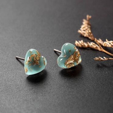 💎 Дизайн: изысканные миниатюрные сердечки нежного мятного оттенка с эффектом прозрачности, украшенные золотыми вкраплениями, которые создают утончённый блеск.