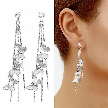 Длинные серьги клипсы с подвесками-бабочками — стильное и женственное