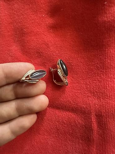 Комплект из пары серёг. Цвет металла теплый золотистый, камни с мягким глянцевым блеском.