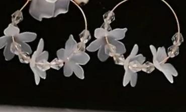 Серьги-кольца с цветами и прозрачными кристаллами.