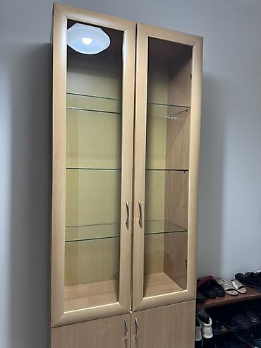Витрина/шкаф для гостиной с комбинированными фасадами - Конструкция: верхняя секция с двумя распашными дверцами из прозрачного стекла, нижняя секция — закрытые распашные дверцы. - Полки: несколько...Вход•Регистрация