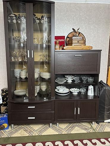 ⭕️19500сом ⭕️ Очень срочно продается Польская стенка 👍Классика /модульный стендовый шкаф-витрина для гостиной из массива/шпона под тёмное дерево. Состав и функционал: - Две боковые витрины со сте...