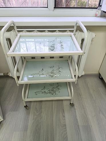Стоматологическая тележка на колесиках с тремя стеклянными полками. -