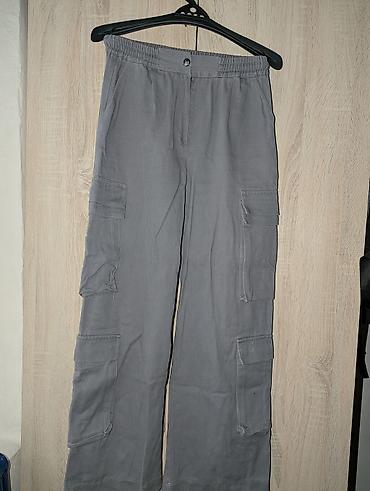 Серый комплект из плотной ткани: укороченная куртка + брюки-карго.