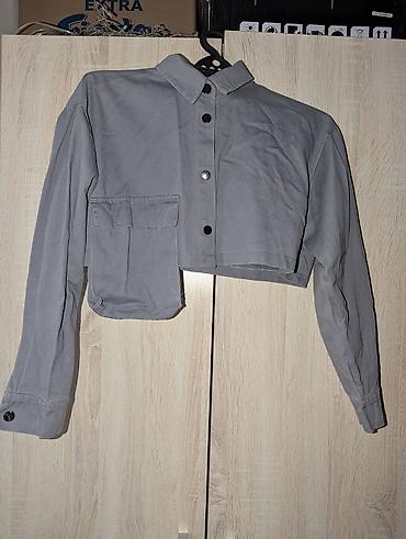 Серый комплект из плотной ткани: укороченная куртка + брюки-карго
