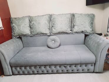 C подушкамиСерый велюровый диван-кровать Сатылат Чалыңыздар!