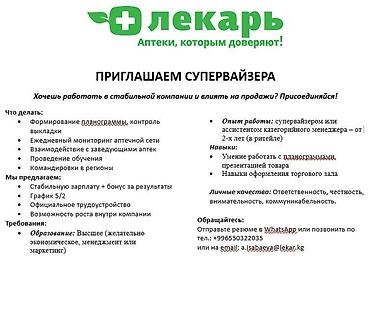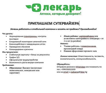 СЕТЬ АПТЕК «ЛЕКАРЬ» ПРИГЛАШАЕТ СУПЕРВАЙЗЕРА Хочешь работать в