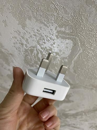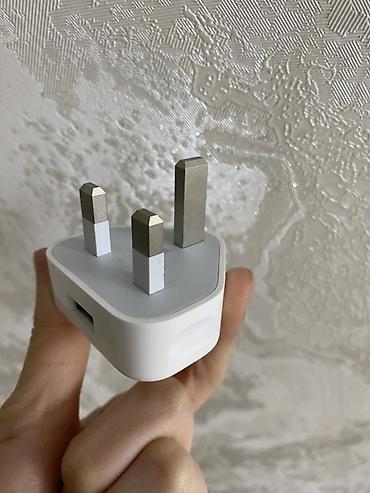 - Оригинальный блок питания Apple с британской вилкой (тип G, 3 контакта).