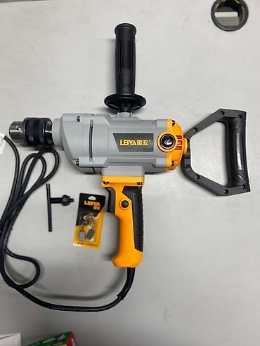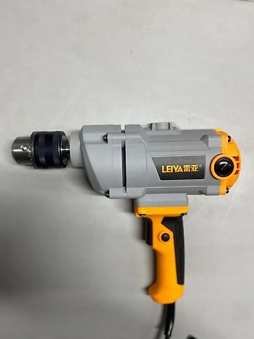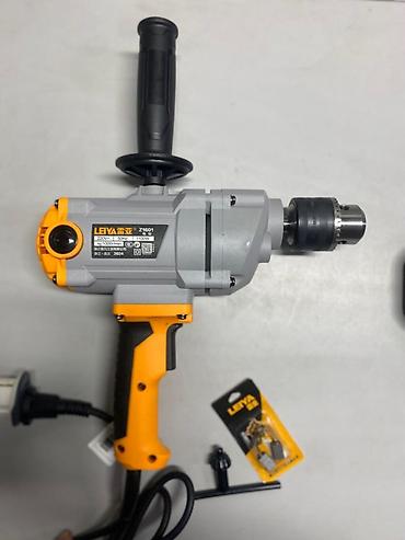 - Комплектация на фото: дрель, ключ для патрона, дополнительная фурнитура/щетки LEIYA, две съемные рукоятки