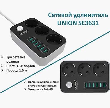 Сетевой удлинитель UNION SE3631 имеет 3 сетевые розетки 220V и 6 USB порта. С его помощью можно подключить не только 3 электроприбора одновременно, но и 6 Ваших гаджета или любых других устройств, которые поддерживают USB зарядку.