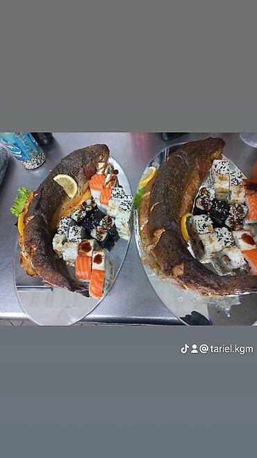 Повар на выездъ: Кыз узатуу,үй той,Үйлөнүү той,Юбилей,куда тосуу ж.б 1-2 блюда, 3-4 вида салата, мясная нарезка, фруктовая нарезка, куриный сет, рыбный сет ,рулеты,холодные закуски, сервировка стол...