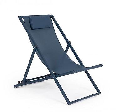 Складной шезлонг/лежак с текстильной сетчатой тканью - Каркас: металлические трубы с округлыми краями. - Полотно: прочная дышащая сетка синего цвета, быстро высыхает. - Конструкция складная, компа...