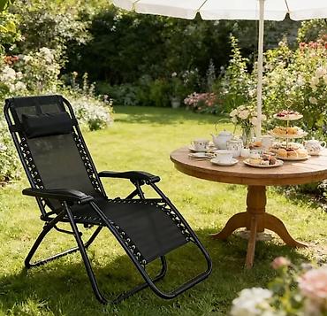 Шезлонг-реклайнер Zero Gravity с подголовником - Тип: складное кресло-шезлонг с режимом «невесомости» (регулируемая спинка и подножка) - Каркас: металлический, усиленные шарниры и фиксаторы положе...