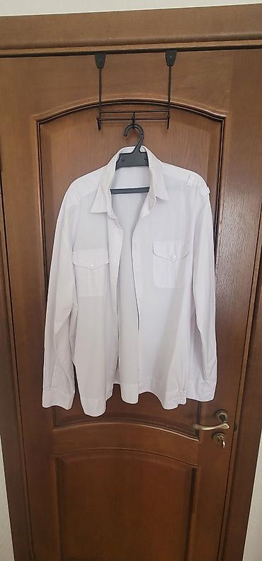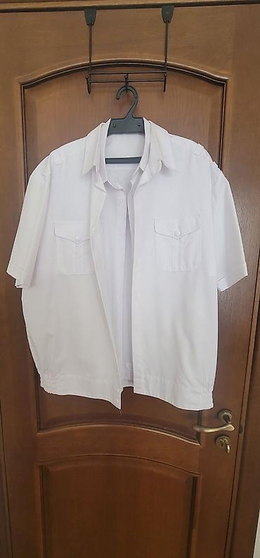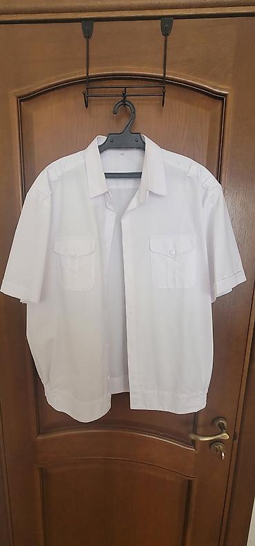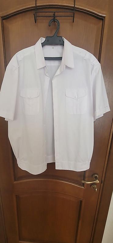 Белая б/у рубашка служебная классического кроя с накладными карманами и планкой на пуговицах. Размер 56/58.
