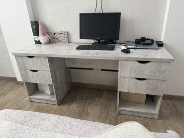 Офисный комплект в серо-графитовой гамме: прямой стол + выкатная тумба “Стратегия” (Шатура) 1. Стол 1 120х80х74см в наличии 4шт цена 8000сом за 1шт. Б/у покупали в Шатуре. 2. Стол 2 размеры 14...