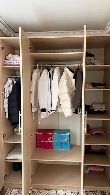 - Вместимость: размещение длинных и коротких вещей на плечиках, большое количество складских полок.