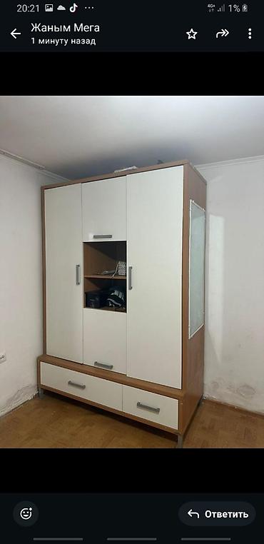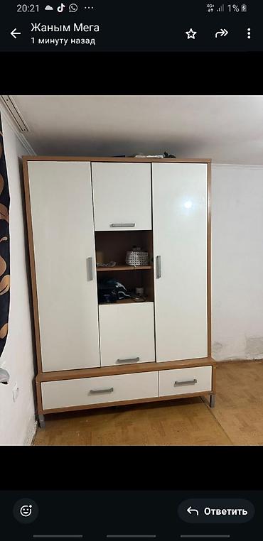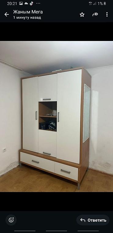 - Конструкция: три вертикальные секции с распашными дверцами; центральная секция имеет откры niche с полкой.