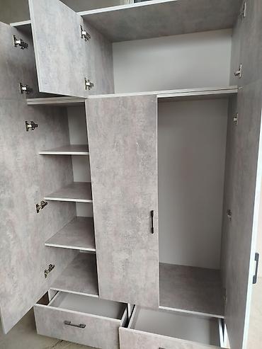 Трёхдверные шкафы-купе/распашные для одежды Описание: - Корпус и фасады: ЛДСП в светлых оттенках — белый матовый и серый «бетон» на выбор. Кромка в цвет, аккуратные чёрные ручки. - Конструкция: ра...