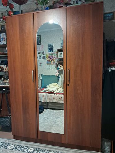 В прдоже трехстворчетый шкаф с разными расцветками размером высоту-210см ширину-120см глубину-50см доставка по городу бесплатная за зеркало по центру доплата 500 сом,