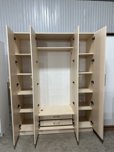 Шкаф с зеркалом 9000 сом Шкаф с четырьмя створками и двумя выдвижными ящиками. Выполнен в светлом древесном оттенке с темными ручками, что придает ему стильный и современный вид. В наличии различны...