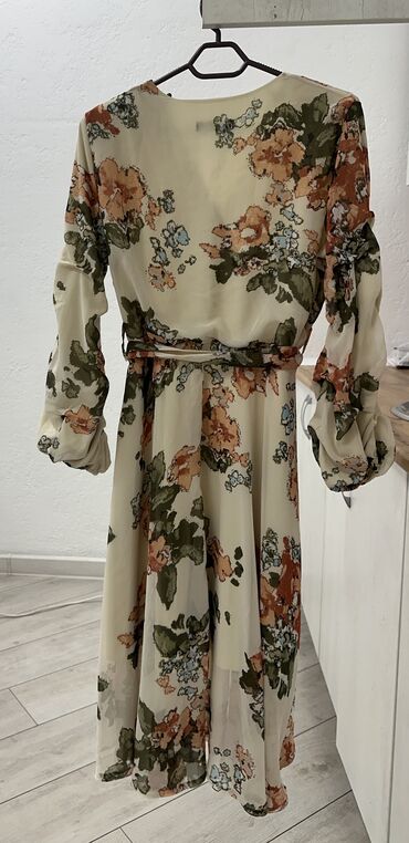 Платная доставкаСамовывозШифоновое платье с красивым цветочным принтом. Производство Турция. Размер 44/46. Рукава фонарик. Длина ниже колен, миди. Сидит идеально,нужно примерить так как на вешалке смотрится не очень