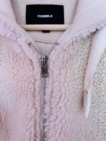 Два верхних изделия. 1) Укороченная куртка-рубашка кремового цвета: - Материал под «овчину» с мягким ворсом по воротнику, планке, манжетам и низу. - Внешняя сторона с легким матовым блеском. - Пря...