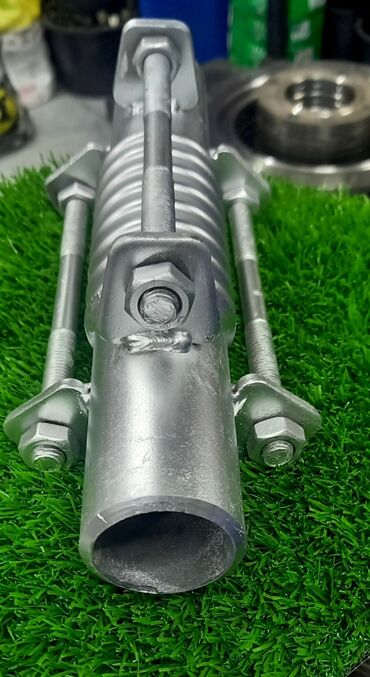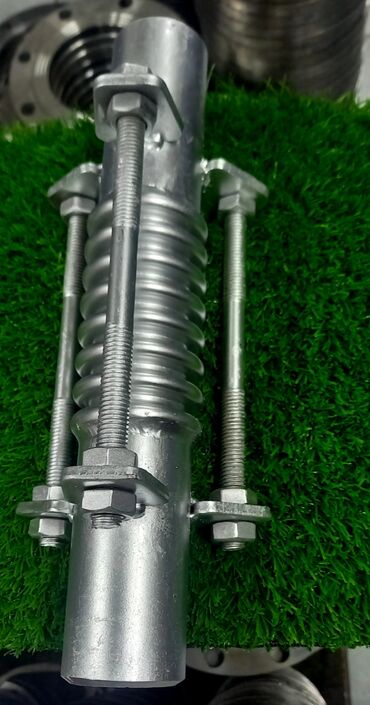 Компенсатор сильфонный приварной осевой с ограничителями. Используется для компенсации температурных расширений трубопроводов. Конструкция включает в себя сильфон, патрубки для присоединения и ограничительные тяги с гайками, позволяющие регулировать величину хода компенсатора.