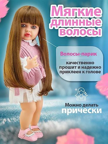 Кукла реборн 60 см. Распродажа, новая кукла, цена 5 000 сом - Реалистичный внешний вид: детальные черты лица, выразительные голубые глаза, длинные светло‑русые кудри с бантом. - Говорит: более 50 ...