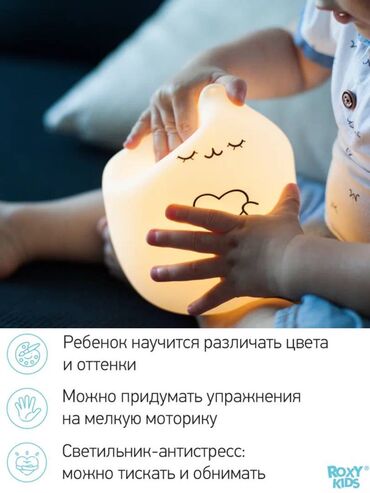 -ночник сделан из гипоаллергенного силикона, что позволяет малышу без опаски мять или даже грызть игрушку;