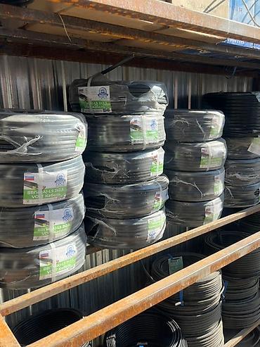 Также на стеллажах представлены силовые кабели ВВГ-Пнг(А)-LS 5 (на фото с красной этикеткой, ГОСТ, бухта 100 м).