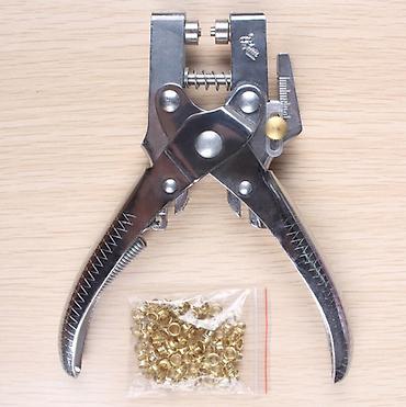 - Комплектация на фото: щипцы и пакет металлических люверсов.