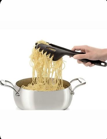 - Конструкция: две половинки соединяются в щипцы, а по отдельности работают как лопатка и ложка/вилка для пасты.