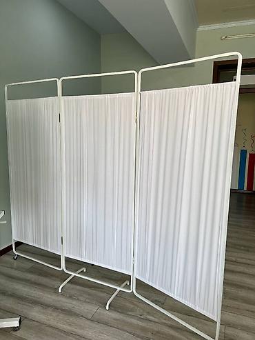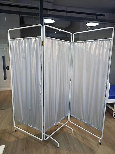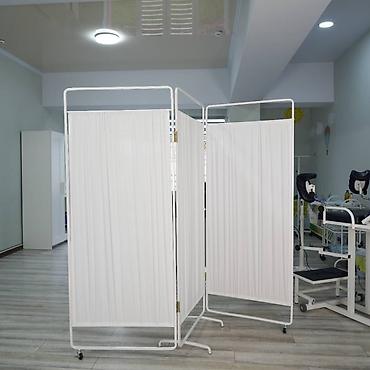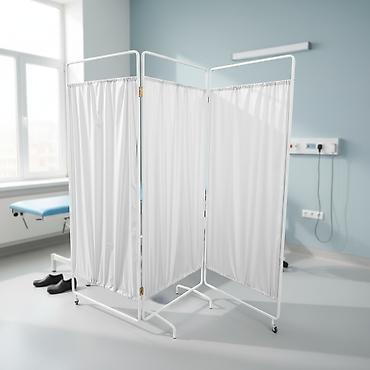 Медицинская ширма на колесах - Конструкция: три секции на шарнирных петлях, легко складывается «гармошкой» и разворачивается для создания приватной зоны. - Каркас: металлическая окрашенная рама с ...