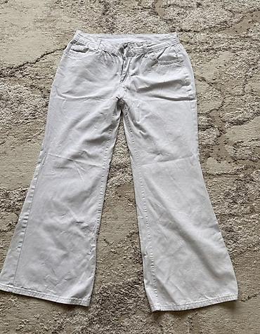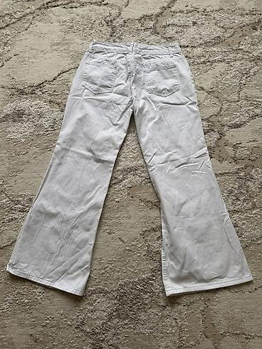 - Фасон: расклёшенные/прямые от бедра, широкие штанины