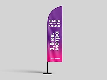 - Изготовление вертикальных флагов/флагштандартов (пляжные флаги, фэзер/капля) — пример площади полотна 2,8 кв. м.