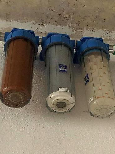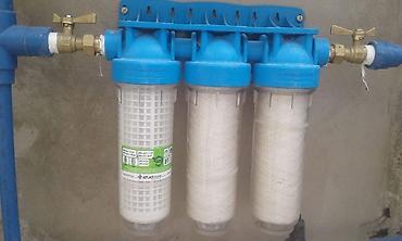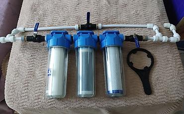 - Трехколбовые блоки предварительной очистки: механические картриджи (поролон/намотка), угольные и полипропиленовые для задержания песка, ржавчины, ила, хлора и запахов.