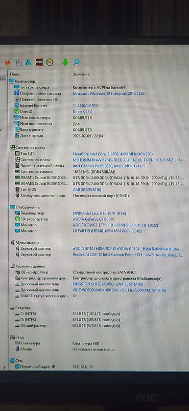 Компьютер, ядер - 6, ОЗУ 16 ГБ, Для работы, учебы, Intel Core i5, NVIDIA GeForce GTX 1070, HDD + SSD
