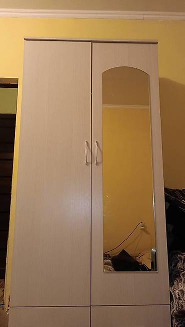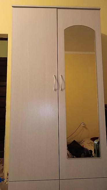 - Фасад: две распашные двери, на правой — большое зеркало с арочным верхом. Удобные ручки.
