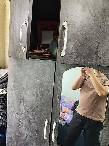 - Компоновка: четыре верхних антресольных дверцы + нижние основные створки; одна створка с зеркалом, вторая глухая.