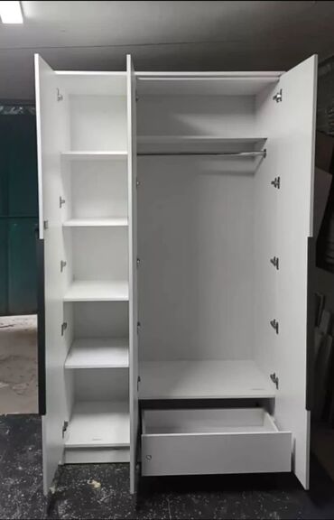 Шкаф для одежды с несколькими секциями, предназначенный для хранения различных предметов гардероба. Представлены модели с разным количеством дверей и ящиков, что позволяет подобрать оптимальный вар...