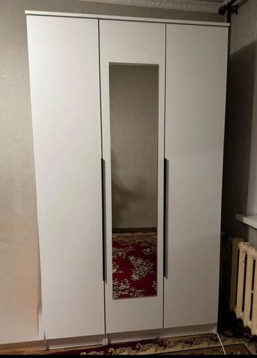Трёхдверный шкаф для одежды, белый, с зеркалом на центральной створке.
