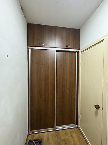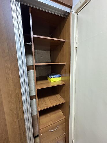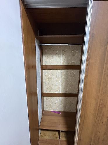 Прихожий Новый шкаф- из ЛДСП под древесину (натуральный серо-коричневый оттенок). - Конфигурация: три секции с четырьмя распашными фасадами и овальным зеркалом на центральной двери. - Внутреннее н...