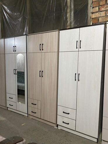 Шкаф с зеркалом 9000 сом Шкаф с четырьмя створками и двумя выдвижными ящиками. Выполнен в светлом древесном оттенке с темными ручками, что придает ему стильный и современный вид. В наличии различны...