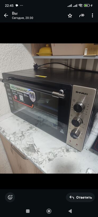 - Мини-печь/электродуховка Shivaki, корпус черный с серебристой панелью. Три поворотных регулятора: таймер, температура, режимы нагрева. Стеклянная дверца с ручкой, индикация работы, наклейка BIO Ceramic. Подходит для выпечки, запекания и разогрева.