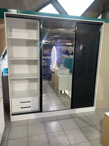С зеркаломШкаф-купе с раздвижными дверями. Модель оснащена одной зеркальной дверью и одной непрозрачной дверью, обеспечивающими функциональность и эстетику. Внутреннее наполнение включает полки и выдвижные ящики для удобного хранения одежды и других предметов. Верхняя антресоль предоставляет дополнительное место для хранения. Идеально подходит для организации пространства в спальне или прихожей. Данные модели изготавливаем на заказ, сроки изготовления 7-8 дней, есть возможность оформить рассрочку через Мбанк м+ рассрочку.