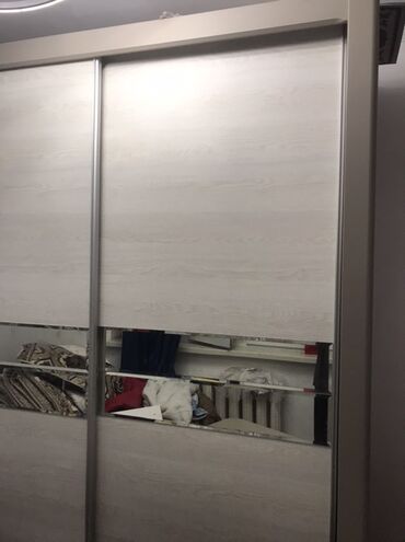 - Материалы: ЛДСП с текстурой светлого дерева, зеркальные вставки, металлическая фурнитура