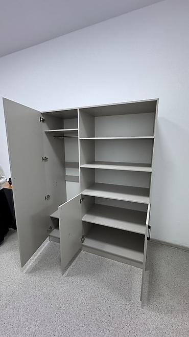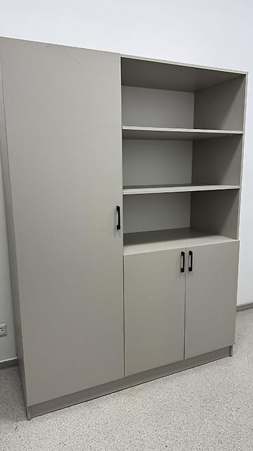Шкаф универсальный, современный дизайн в светло‑сером цвете.