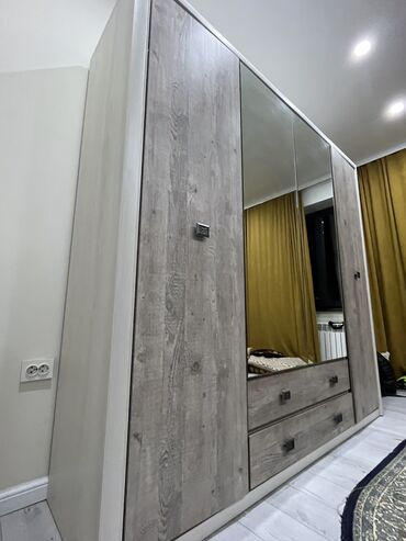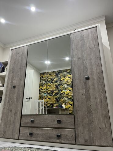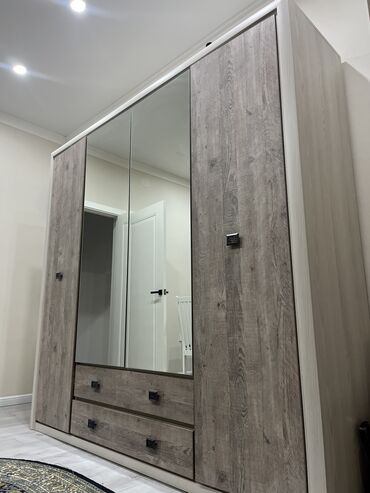 Шкаф с несколькими секциями и отделениями, выполненный в светлых тонах с текстурой под дерево. Состоит из двух частей, что позволяет удобно организовать хранение вещей. Подходит для размещения в сп...