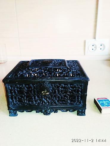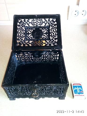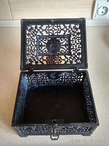 Шкатулка натуральное дерево 1979 года в идеальном состоянии.такая же есть в музее в коллекции.читайте описание.торг уместен вторая шкатулка чёрного цвета 1972 год цена 5000 сом