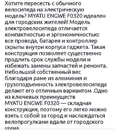 ОБМЕН НА ГОРНЫЙ ВЕЛОСИПЕД!!!! Складной электрический велосипед (черный) Покупал новый месяц назад. В комплекте Родня Зарядка. - Компактная складная рама — удобно переносить и хранить. - Два сиден...